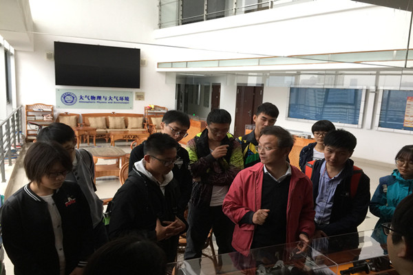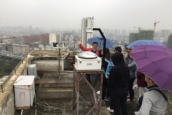 在中科大地空学院李锐教授的带领下,我院学生走进一间研究室,里面摆放着一台正在工作的仪器,它的制作者之一袁仁民副教授用通俗的语言向来访学生介绍了这台通过接受光来检测气溶胶的仪器的工作原理,并耐心的解答了学生所提的问题,包括这台仪器所使用的工作环境和核心部件,介绍完这台仪器之后,袁仁民副教授带领大家走上顶楼,参观大气监测的一些仪器,包括雨量计,能见度仪,雨雷达,和前向散射仪,使得我院学生对这些仪器有了初步的认识和了解。