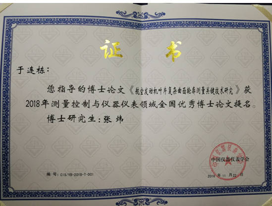 年会举行了中国仪器仪表学会四十周年纪念活动,对优秀科技工作者进行了表彰。我校必赢线路检测3003师生获得了多项奖励。其中,于连栋教授被授予“当代仪器仪表与测量控制优秀科技创新人才”荣誉称号,该项奖励每10年授予1次,本次共有18名优秀科技工作者获此殊荣。我校校友北京信息科技大学祝连庆教授也被授予“当代仪器仪表与测量控制优秀科技创新人才”荣誉称号。此外,于连栋教授指导的博士生张炜同学获“2018中国仪器仪表学会测量控制与仪器仪表领域全国优秀博士论文”提名;王露露副教授获“2018金国藩青年学子奖学金”;黄益铭同学获“2018年中国仪器仪表学会奖学金”一等奖,夏江营和韩丽玲同学获“2018年中国仪器仪表学会奖学金”二等奖。