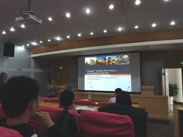 校学术交流年会期间美国机械工程师协会教授Linxia Gu受我院邀请于10月22日在学术会议中心二楼报告厅作了题为“Invisible Traumatic Brian Injury: a transdisciplinary approach”的讲座,我院四十多位老师及研究生聆听了本场讲座。李维诗老师主持了本次讲座。