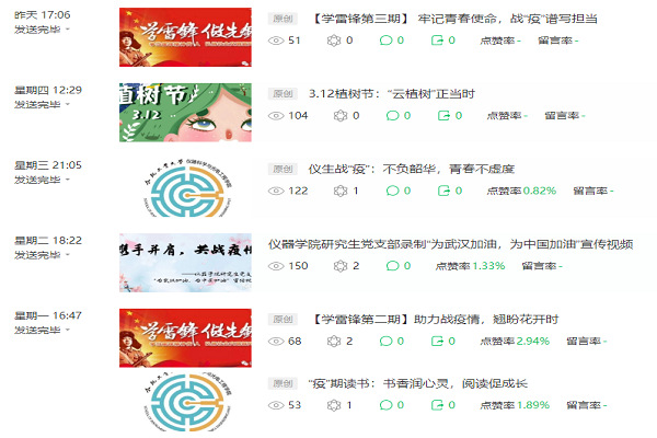 面对新冠肺炎疫情,学院依托“仪器风发”公众号,不断创新工作思路,深入拓展疫情防控期间学生思想政治教育的内容和外延,既积极提升学生综合素质,服务学生健康成长,又在疫情防控中发挥重要教育作用,为打赢疫情防控阻击战发挥使命担当。