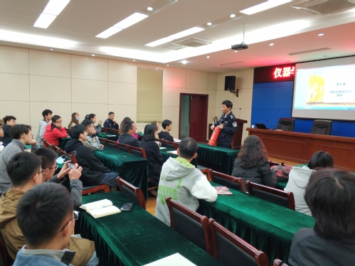消防科秦老师、焦老师和施老师通过视频、图片,结合典型案例,生动讲解了火灾危害、火灾预防、初期火灾扑救方法以及火场疏散逃生和常用灭火器的正确使用方法等消防安全知识,并结合校园工作生活中常见消防安全隐患,强调了如何从源头上预防、火灾发生后如何及时扑灭以及火灾现场如何应急逃生。