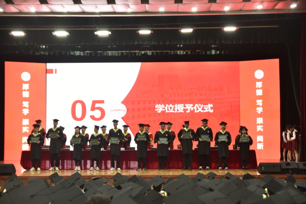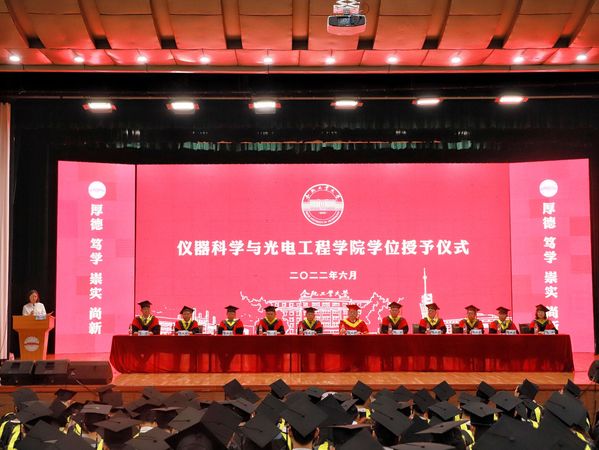 仪式在庄严隆重的国歌声中拉开序幕,院党委书记钟军宣读了2022年“安徽省品学兼优毕业生、必赢3003no1线路优秀毕业生”表彰决定,副院长夏豪杰宣读了“学位授予决定”。共有位434人获得学位,其中工学博士3人,工学硕士68人;工程硕士66人;工学学士297人。