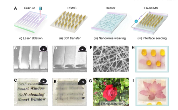 仿生光电器件因其广泛的应用前景(如节能建筑、智能天窗、隐私保护)激发了科研人员浓厚的研究兴趣。然而传统的调温控光器件(如传统智能窗)虽然能在应力、PH、温度、电、磁等外界刺激下实现材料透光性的可逆调谐,但是在极端条件下(如多雨、结冰)其功能的适用性和稳定性欠缺。所以设计研发一种超疏水、自清洁、抗结冰的智能窗仍是当前研究的热点之一。