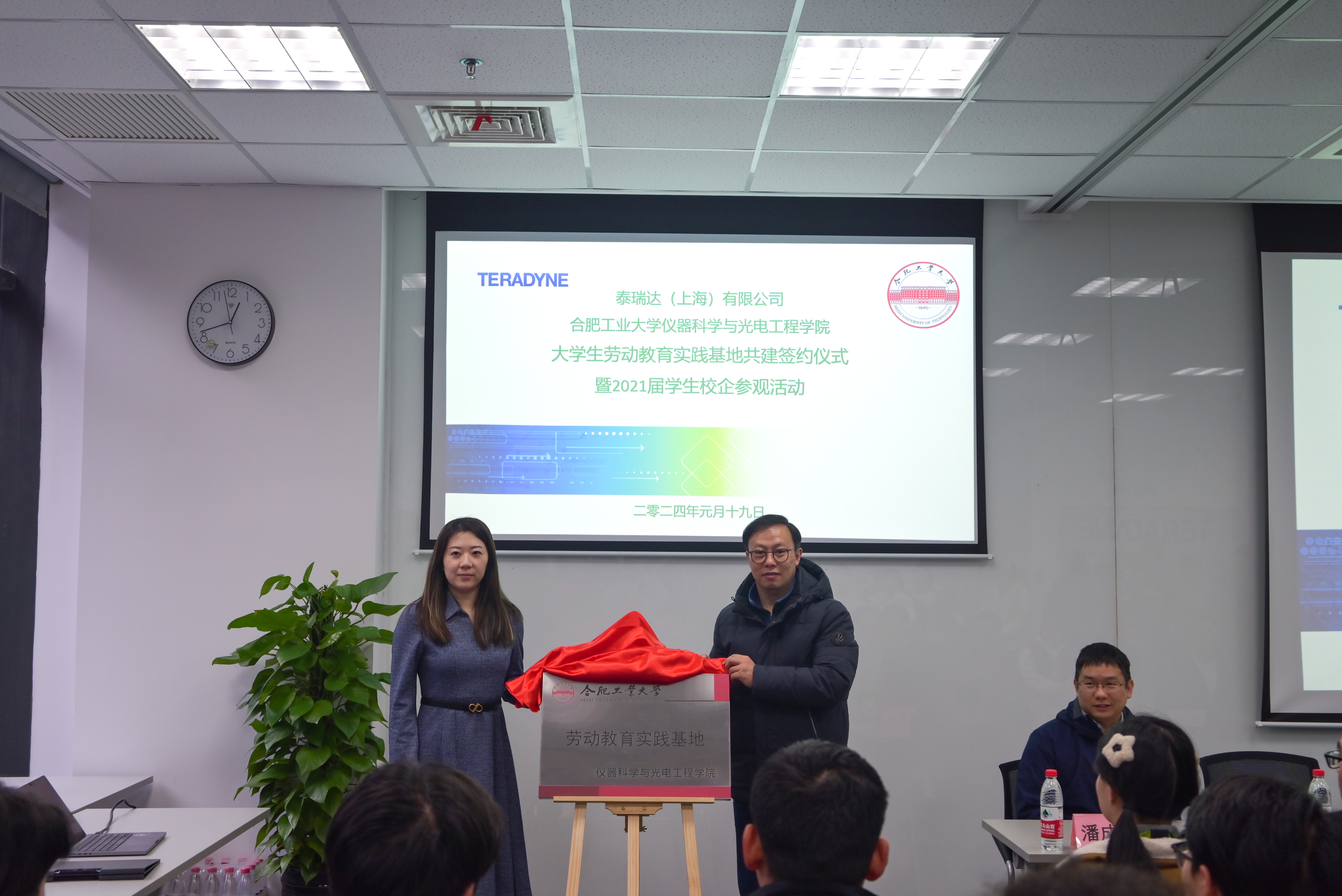 1月19日,仪器学院与北京兆易创新科技股份有限公司全资子公司合肥格易集成电路有限公司、泰瑞达(上海)有限公司合肥分公司举行共建大学生劳动教育实践基地签约揭牌仪式,仪器学院党委副书记郑洁,合肥格易集成电路有限公司公共事务部党建负责人兼党委书记徐君,泰瑞达中国工程方案开发部研发总监侯毅,仪器学院大学生创新实践中心主任张阳、教师代表潘成亮、黄亮,年级辅导员和部分学生参加了本次活动。