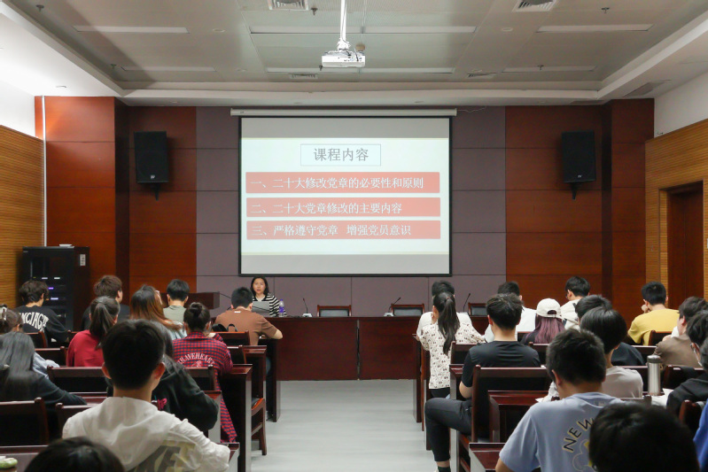 郑洁以中国共产党第二十次全国代表大会关于《中国共产党章程(修改案)》的决议为切入点,结合建党以来八次制订党章、十一次修订党章,着重论述了二十大党章修改的必要性和原则。随后,她带领学员们逐句分析二十大党章修改的主要内容,深刻体会每一个字词句变化背后的重要含义和价值。最后,她提出学习党章的六个“联系实际”,教育引导学员们发挥好党员的先锋模范作用,不仅要觉悟思想意识,还要夯实学业基础,提高自身政治敏感度,维护国家和社会的安全与稳定。