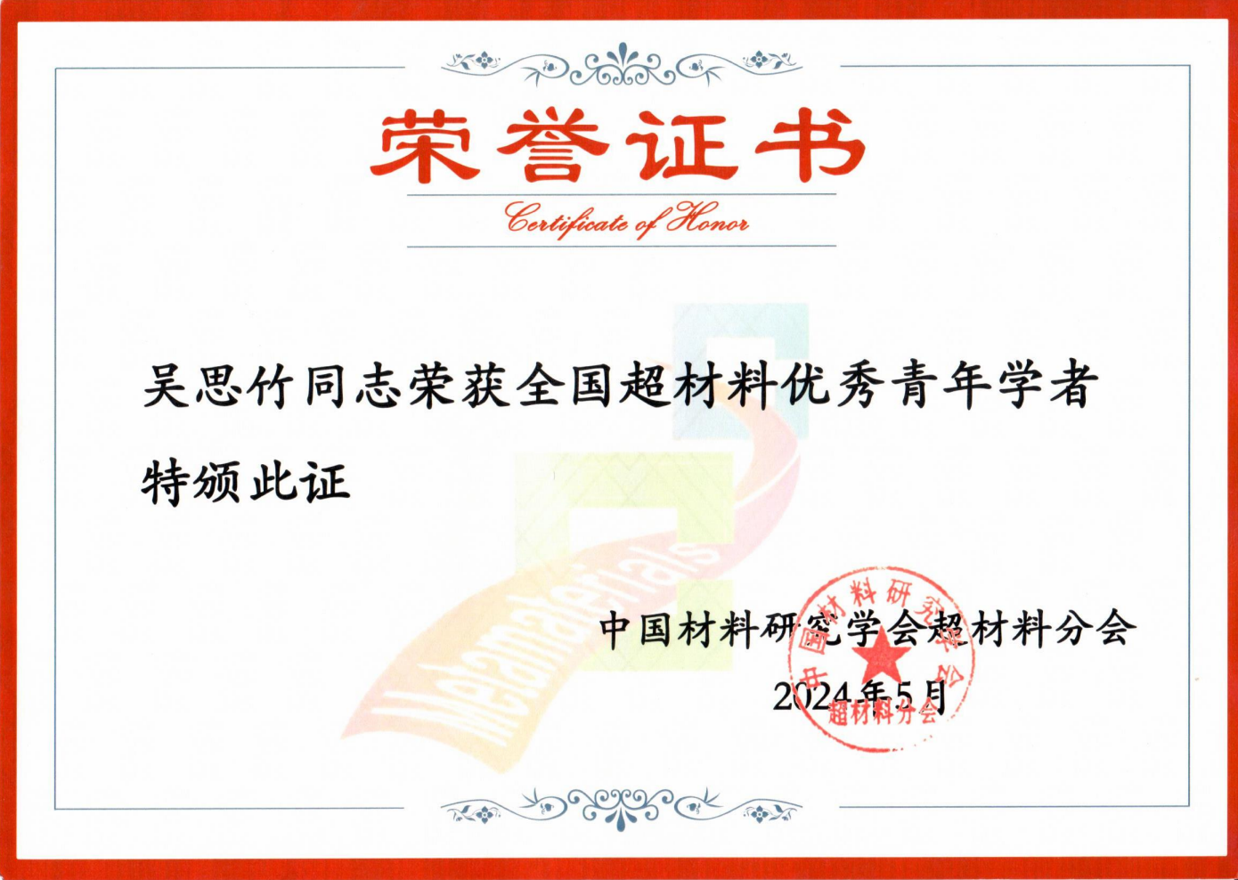 我院吴思竹教授获全国超材料优秀青年学者奖