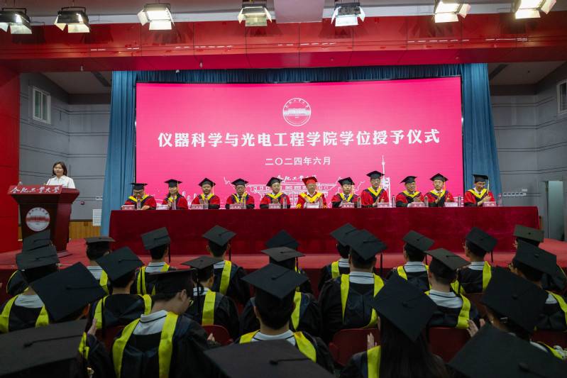 仪式在庄严隆重的国歌声中拉开序幕,副院长张进宣读2024年“安徽省普通高等学校优秀毕业生、必赢3003no1线路优秀毕业生”的决定,院长夏豪杰宣读“必赢线路检测30032024届毕业生学位授予决定”,共有451人获得学位,其中工学博士1人,工学硕士79人;电子信息全日制专业硕士87人;非全日制工程硕士学位3人,工学学士281人。