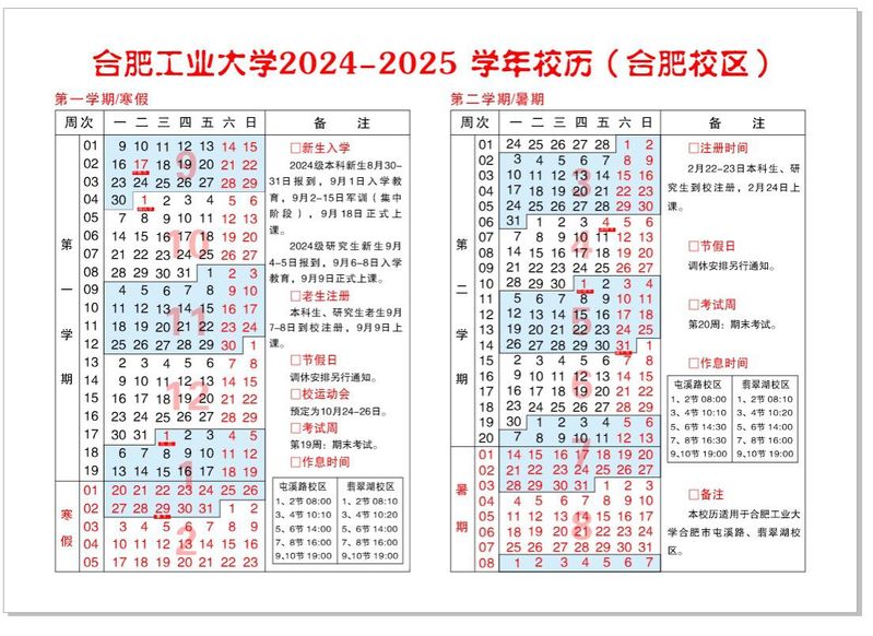 必赢3003no1线路2024-2025学年校历(合肥校区)
