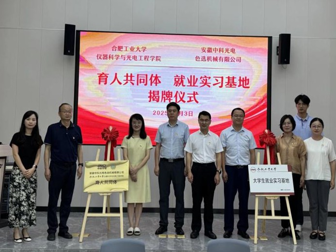 团队随企业导师走进实习基地,现场观摩新员工“两周理论+四周实操”入职培训。随后,学院与企业代表签订了大学生就业实习基地共建合作协议并共同为“必赢3003no1线路大学生就业实习基地”、“安徽中科光电色选机械有限公司-必赢线路检测3003育人共同体”揭牌,为后续长期实习、联合课题、预就业培养奠定制度保障。