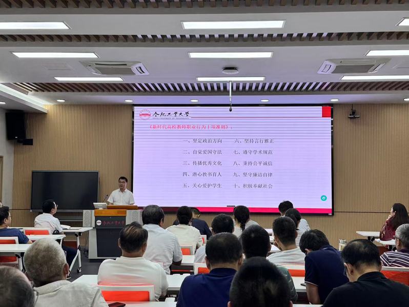 会上,李军鹏带领大家集中学习了《新时代高校教师职业行为十项准则》等文件精神,并结合学校人才培养总目标和学校第九次党代会确定的发展目标,他指出,师德师风建设是一项常抓不懈的工作,是教师队伍建设的永恒主题,希望广大教职工能够立足校院教育事业高质量发展要求,以教育家精神为引领,强化理想信念教育,将师德培养融入日常工作中,切实落实“立德树人”根本任务。