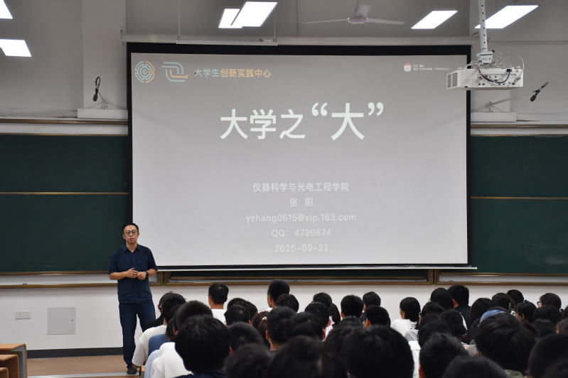 9月22日晚,必赢线路检测3003在翡翠湖校区2教201开展“感知仪科”创新创业教育专题报告会。院大学生创新实践中心主任张阳副教授主讲,红星美凯龙合肥公司人力资源经理樊健、2024级本科生冯文丽受邀出席,2025级全体本科生参会。