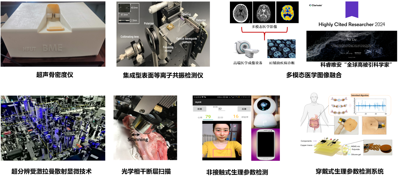 生物医学仪器方向聚焦于从分子、细胞到在体层面的检测、操控与成像,致力于发展新型生物医学仪器与系统。该方向围绕生物医学传感器、微纳操控与测量、信号与图像处理、高端仪器系统四大核心领域展开,重点突破光/电化学传感、单细胞操控、超分辨拉曼显微、医学超声、磁共振成像及柔性穿戴装备等关键技术。研究旨在服务于疾病诊断、药物筛选、智慧医疗等重大需求,依托多项国家级与省部级项目,产出了包括创新算法、高端自研仪器、国家标准及高影响力论文在内的一系列典型成果,推动生物医学测量技术的创新与仪器装备的进步。