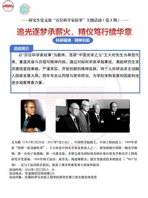 仪器学院研究生党支部“百位科学家故事”主题活动第三期预告